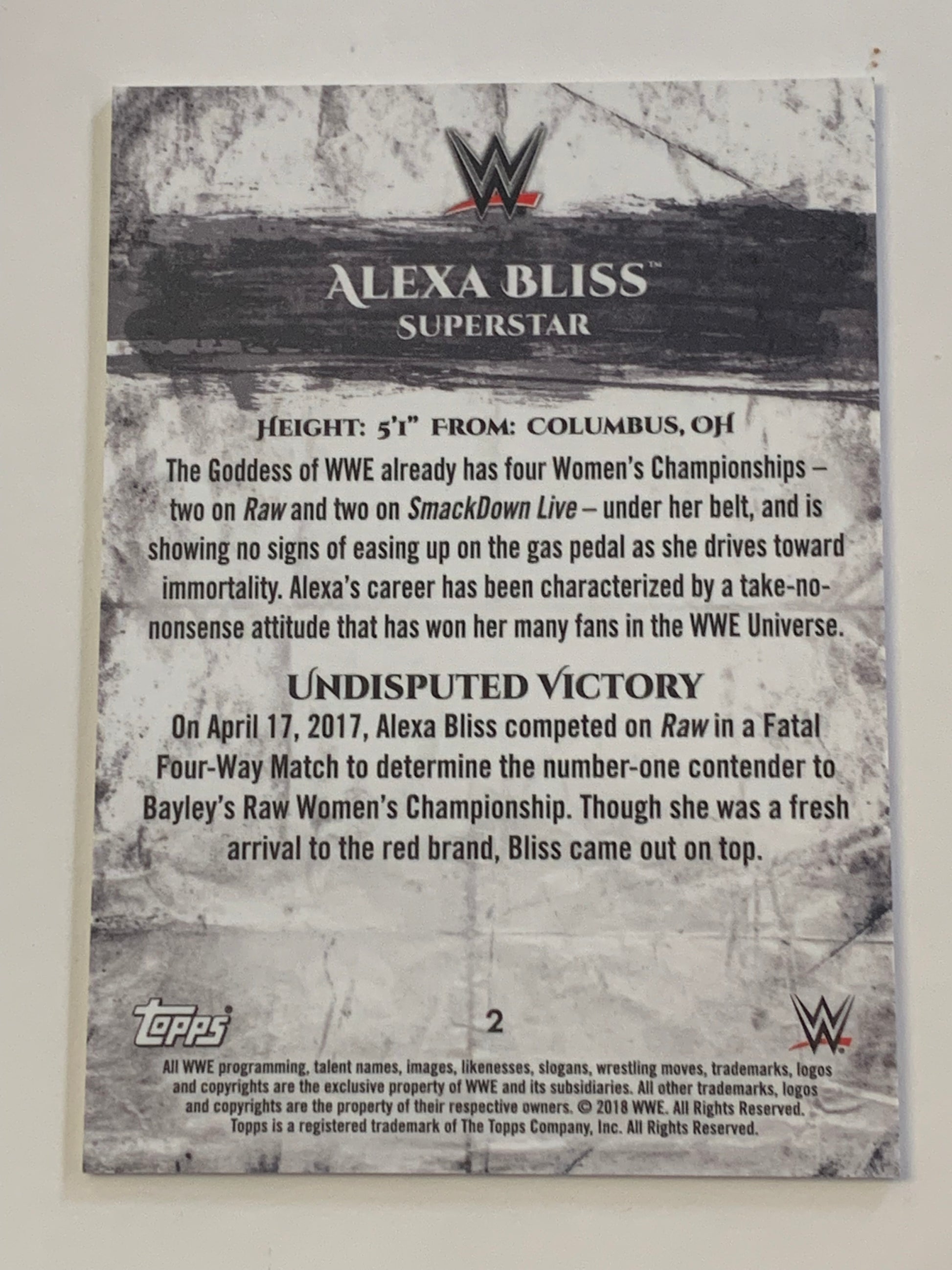 Alexa Bliss 2018 WWE Topps Undisputed Card #2