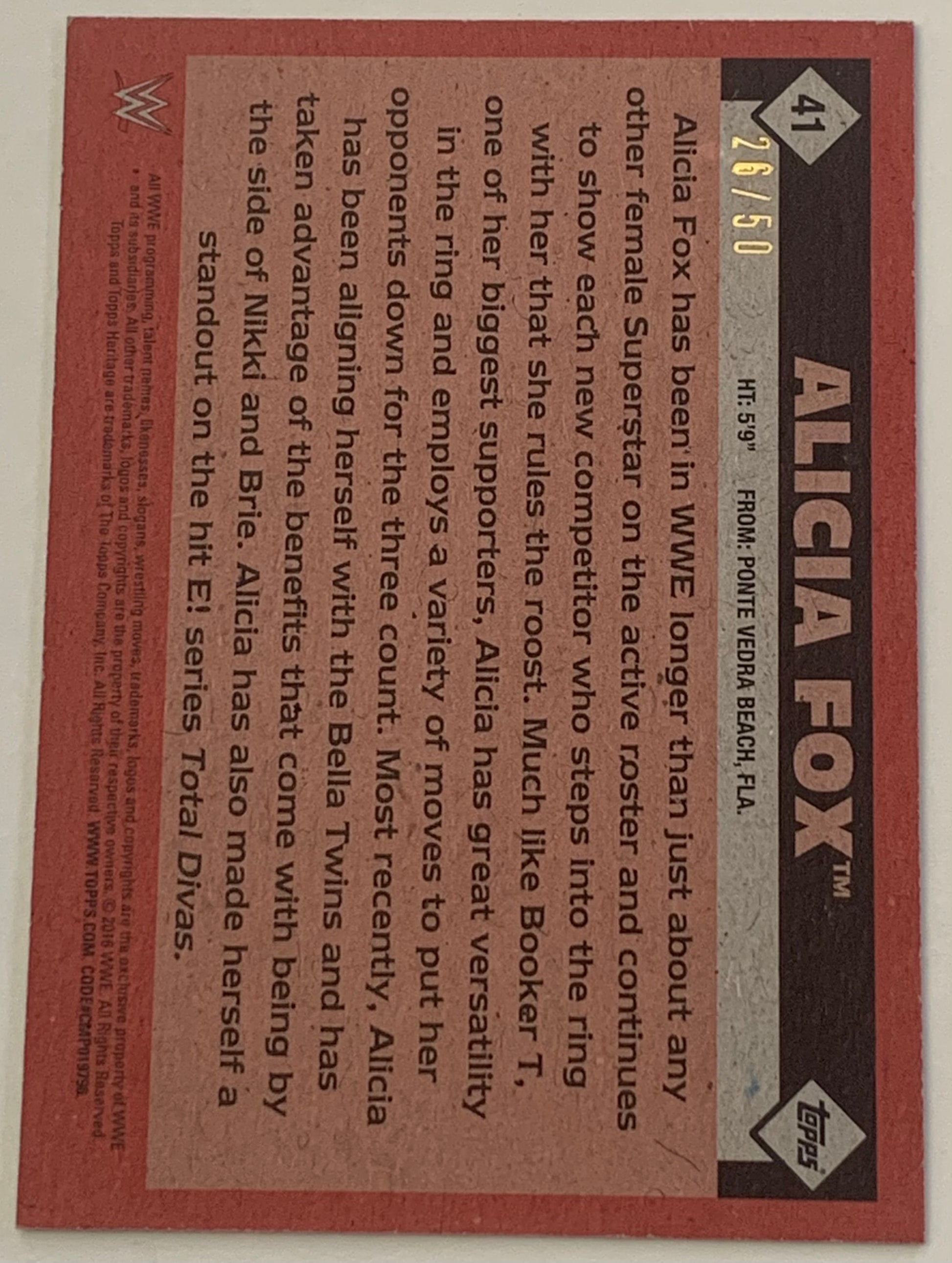 Alicia Fox 2016 WWE Topps Heritage Parallel Card #26/50