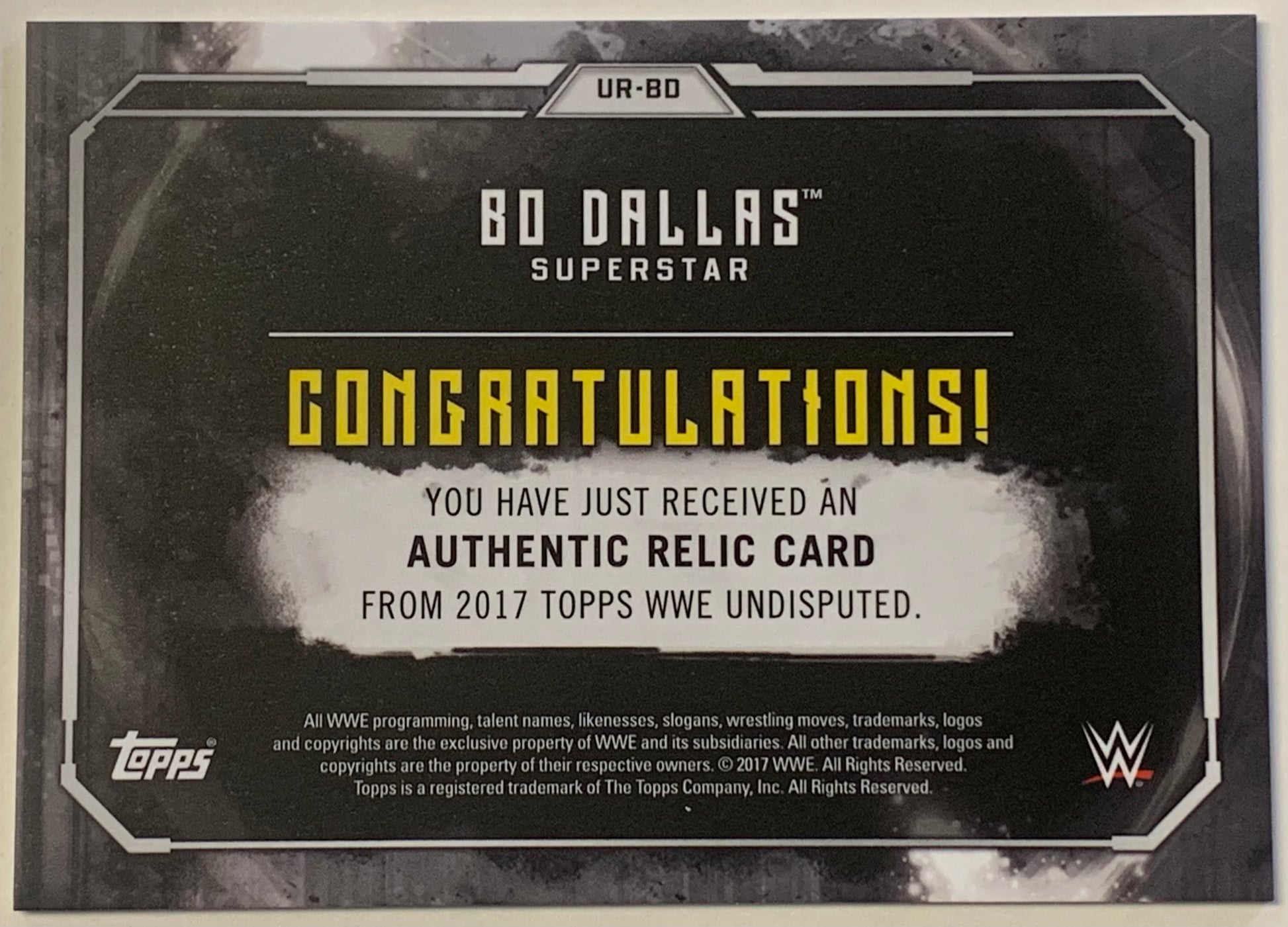 Bo Dallas 2017 WWE Topps Undisputed Authentic Relic Card #143/199 (Uncle Howdy)