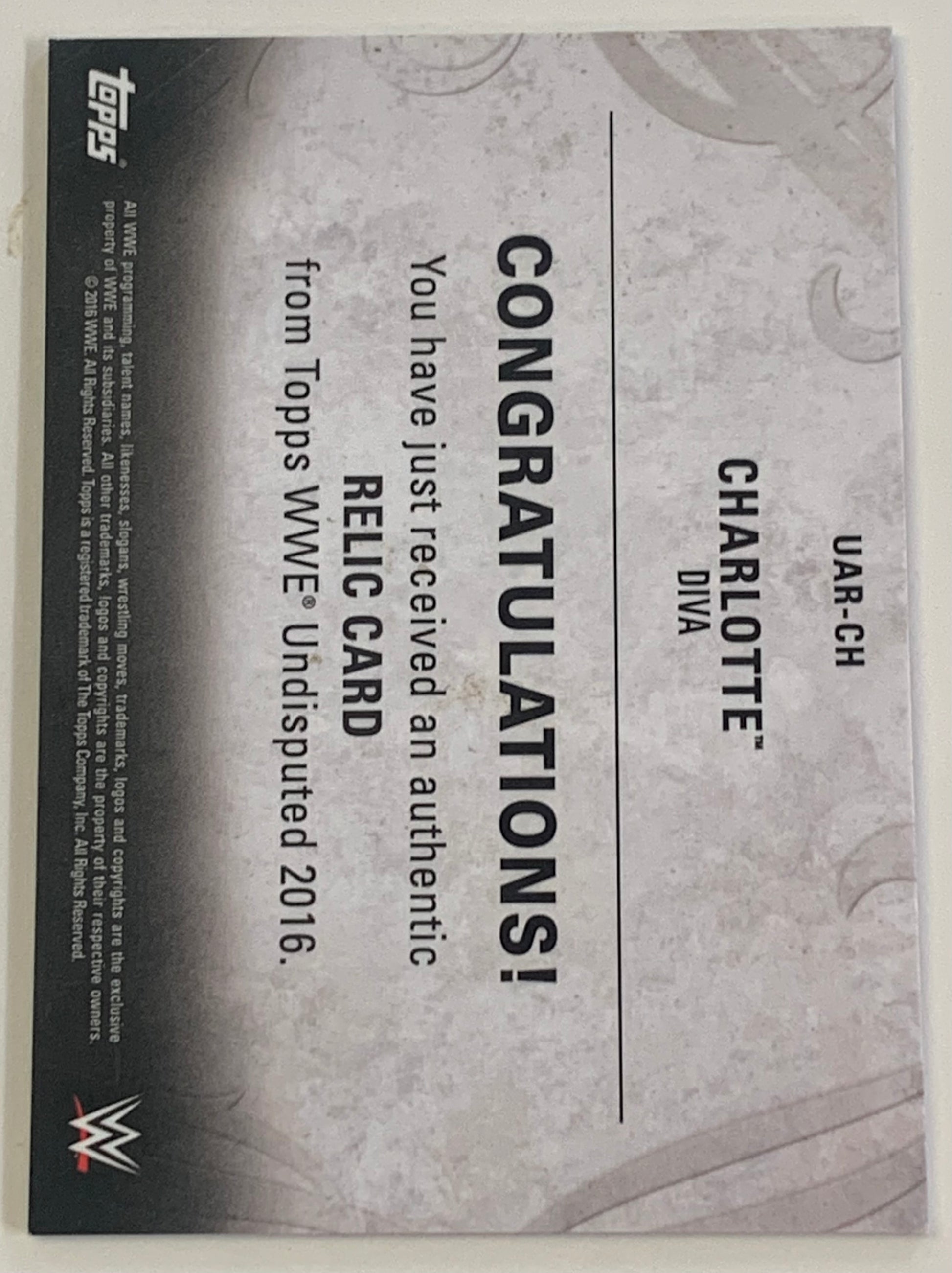 Charlotte Flair 2016 WWE Topps Undisputed Authentic Relic Card #/175