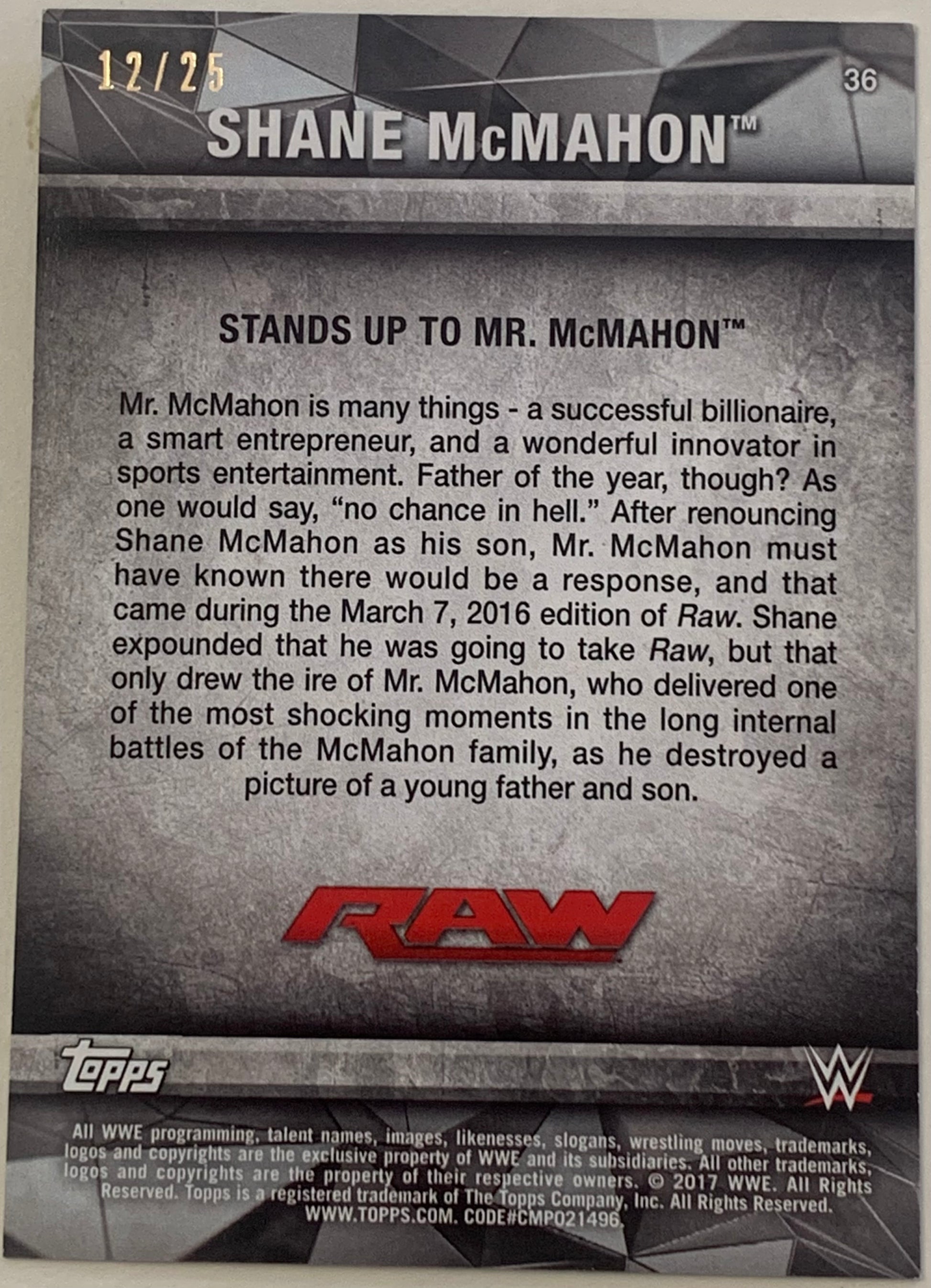 Shane McMahon 2017 WWE RAW Topps Parallel Card #12/25