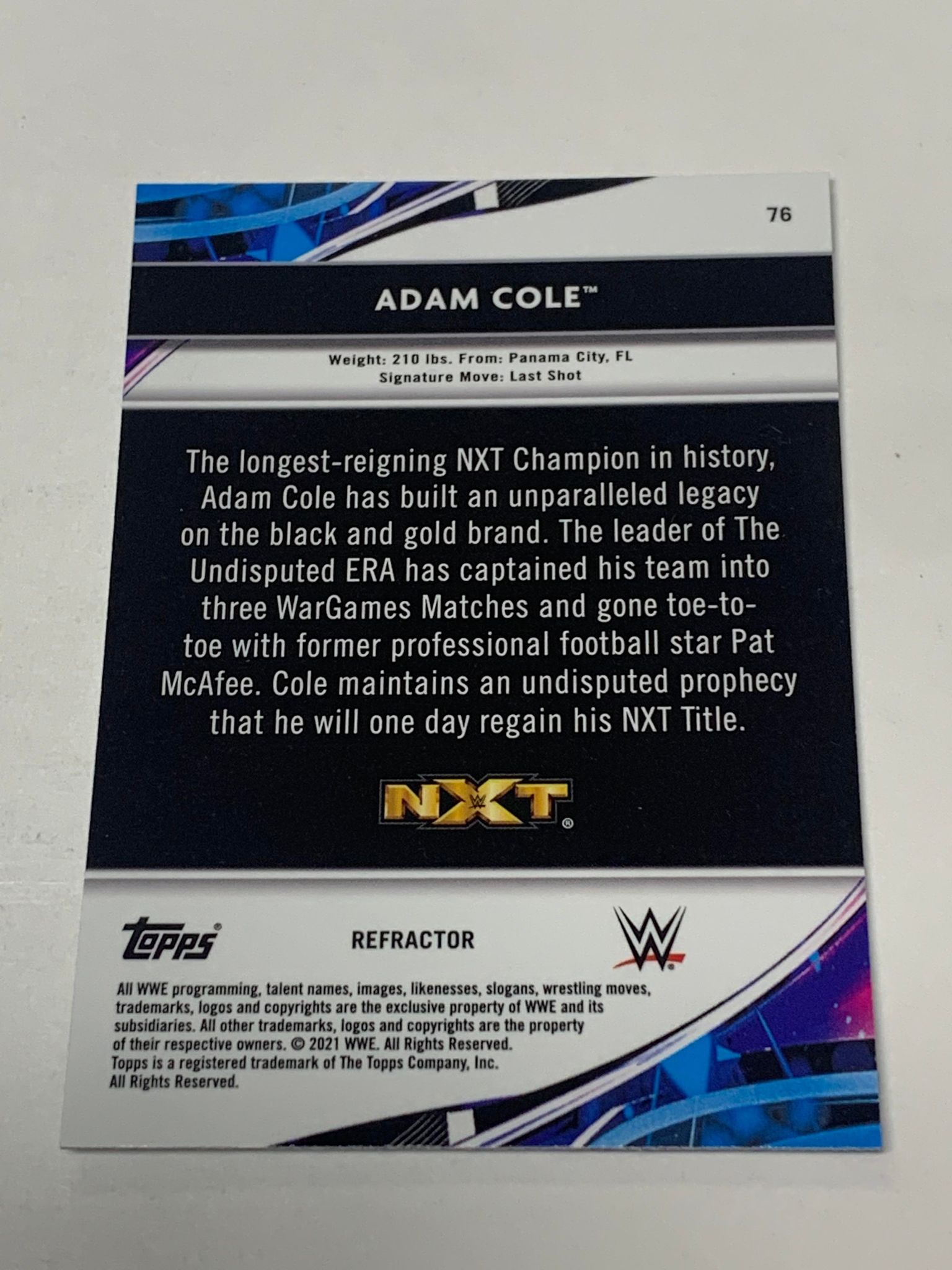 Adam Cole 2021 WWE Topps Finest REFRACTOR Card #76