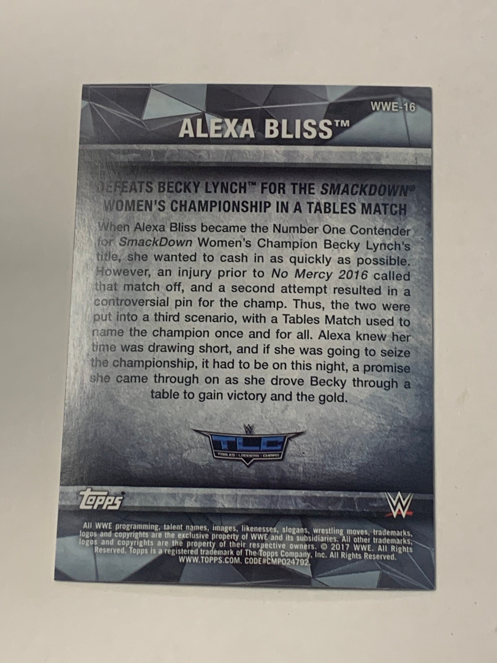 Alexa Bliss 2017 WWE Topps TLC Card #WWE-16