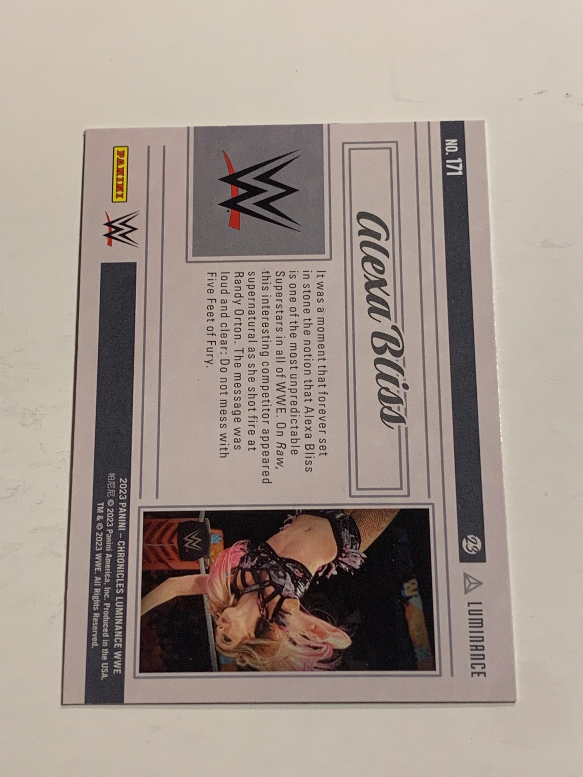 Alexa Bliss 2023 WWE Panini Chronicles Luminance Card #171