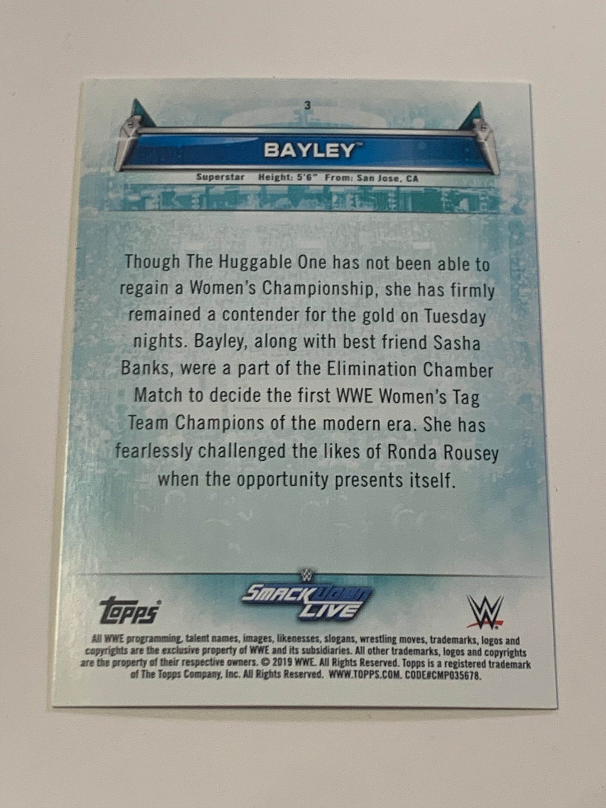 Bayley 2019 WWE Topps Womans Division Card #3