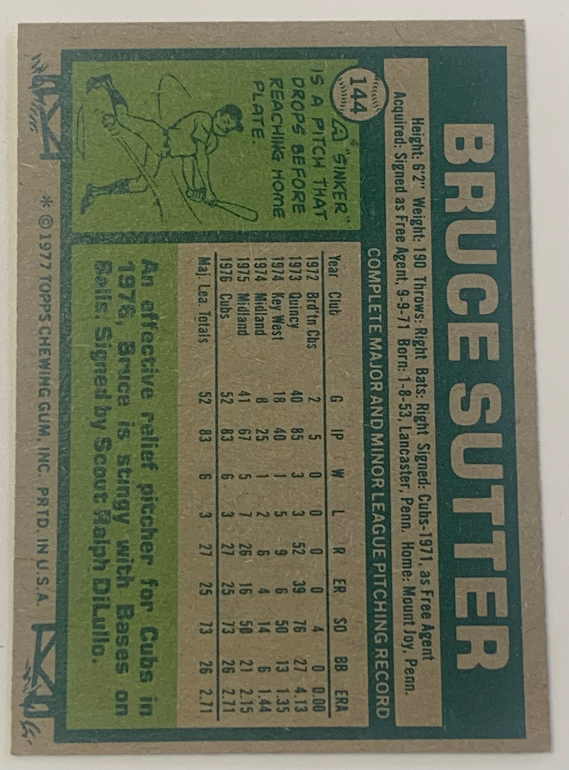 Bruce Sutter 1977 Topps Baseball Rookie Card #144