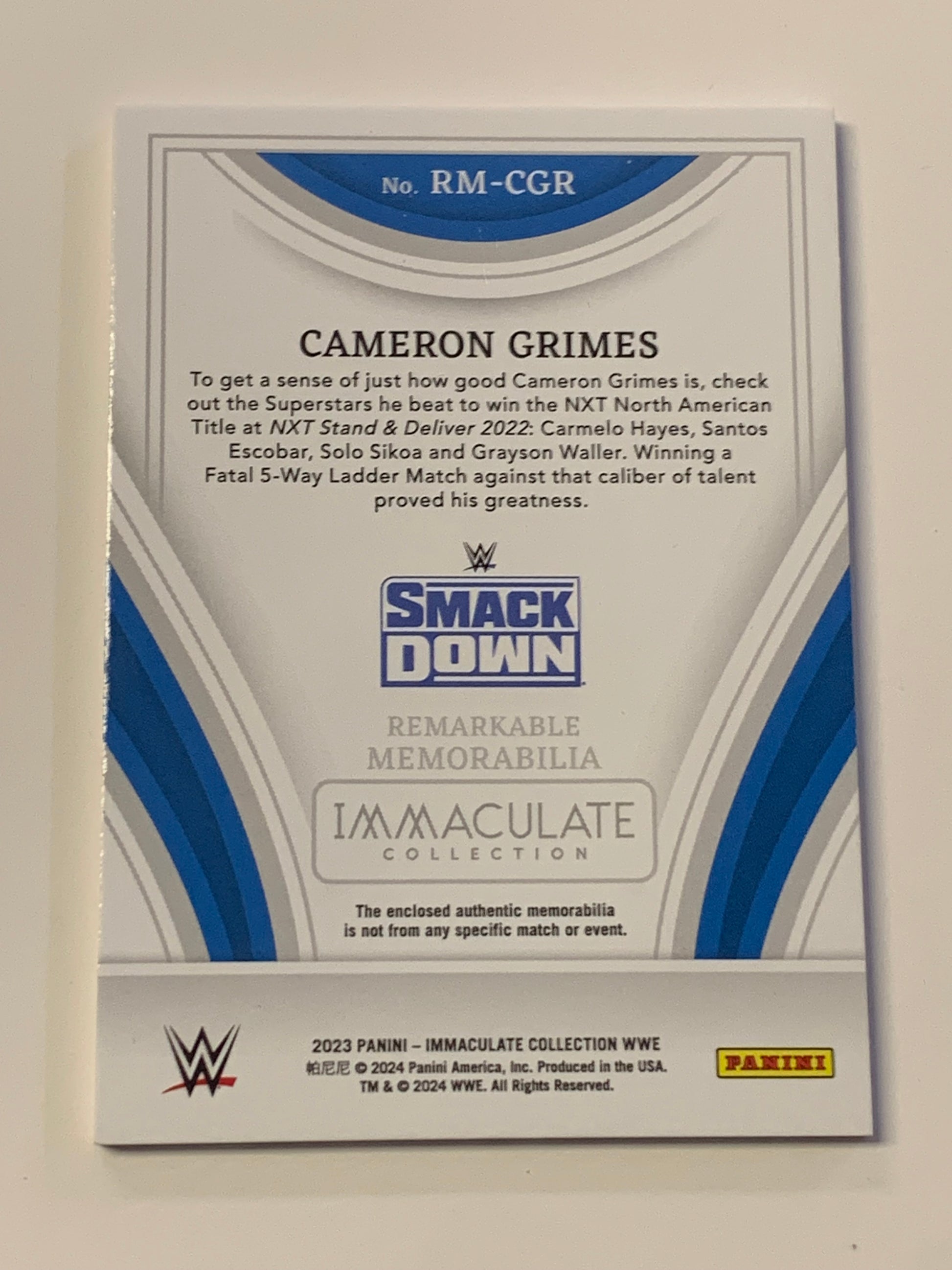 Cameron Grimes 2023 Panini Immaculate Collection Remarkable Memorabilia Card #RM-CGR