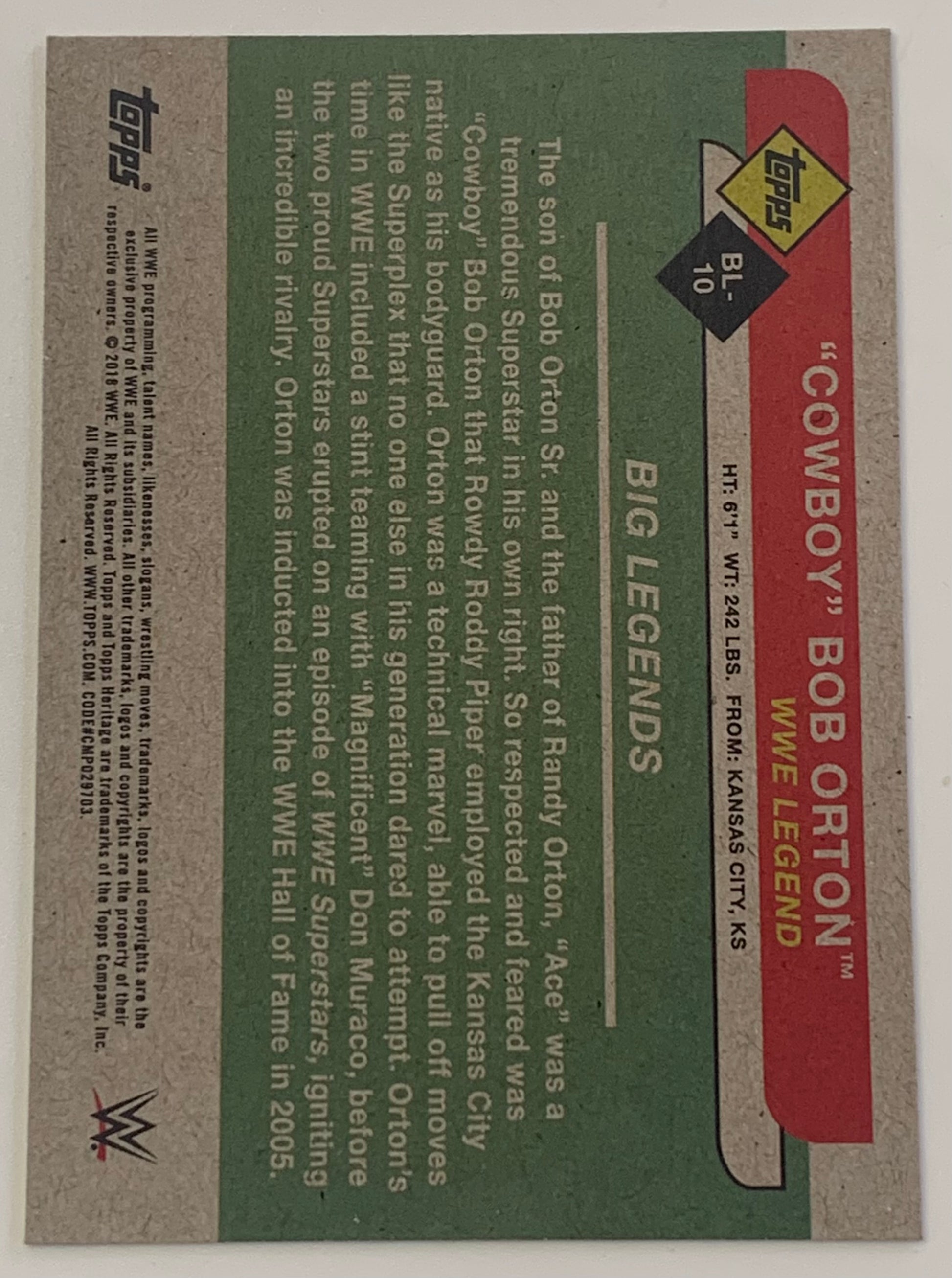 Cowboy Bob Orton SIGNED 2018 WWE Topps Heritage Card (Comes w/COA)