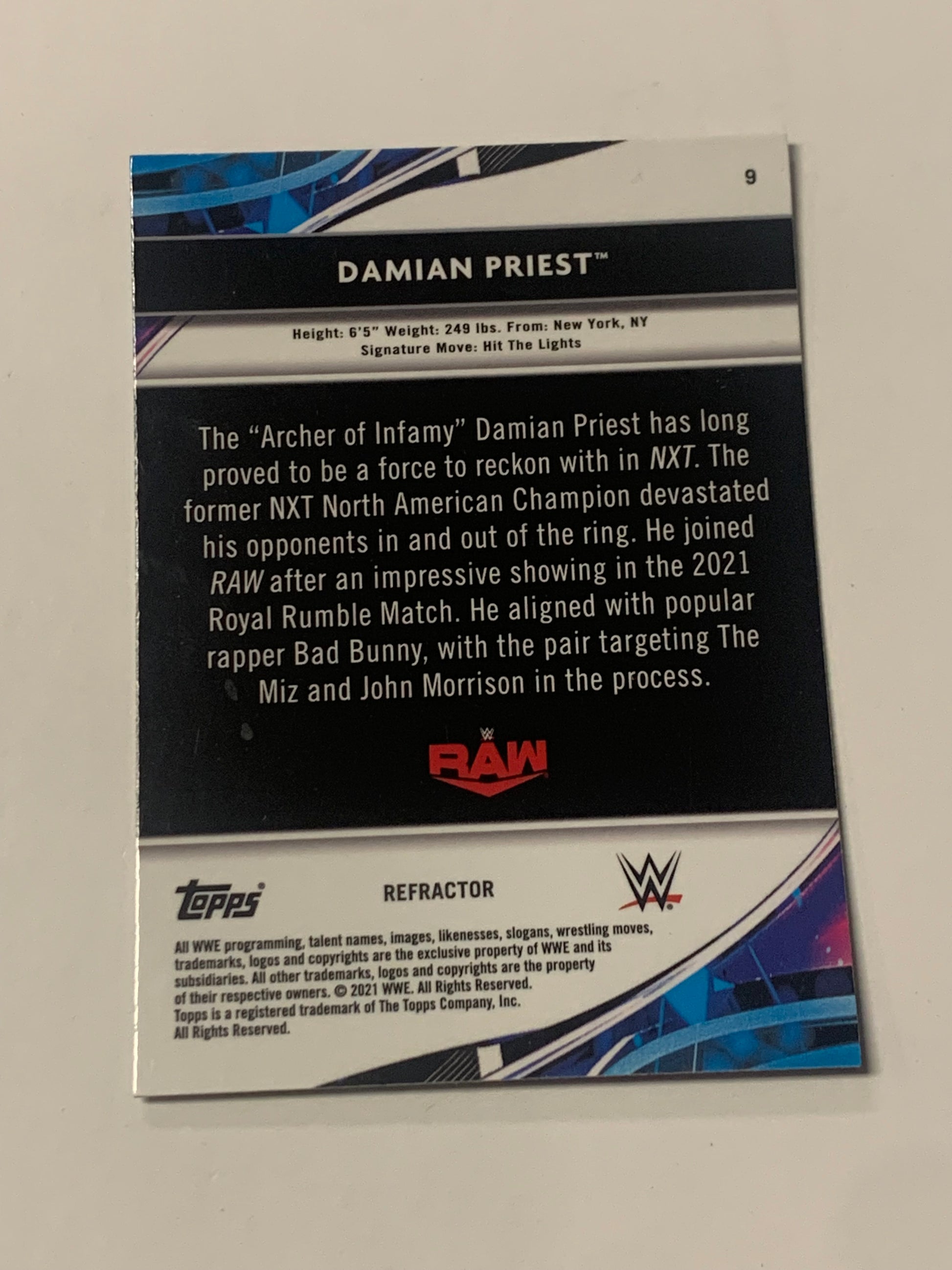 Damian Priest 2021 WWE Topps Finest Refractor Card #9