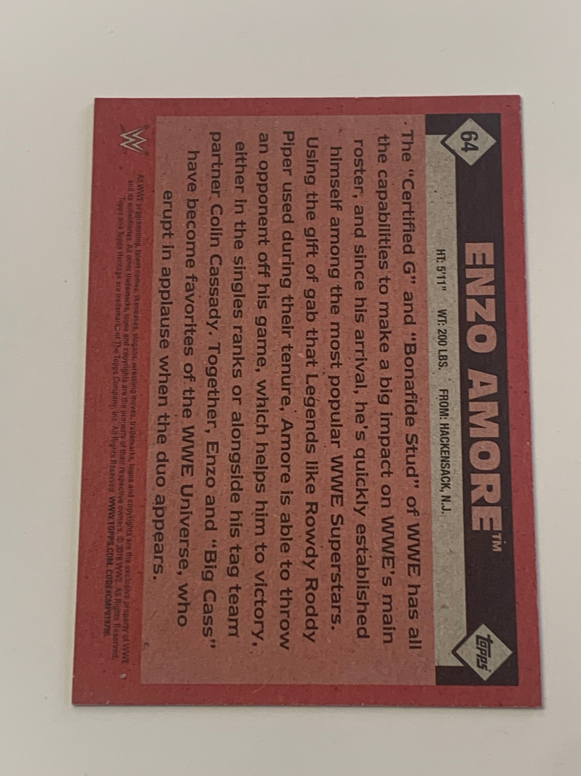 Enzo Amore 2016 WWE Topps RC SIGNED Card