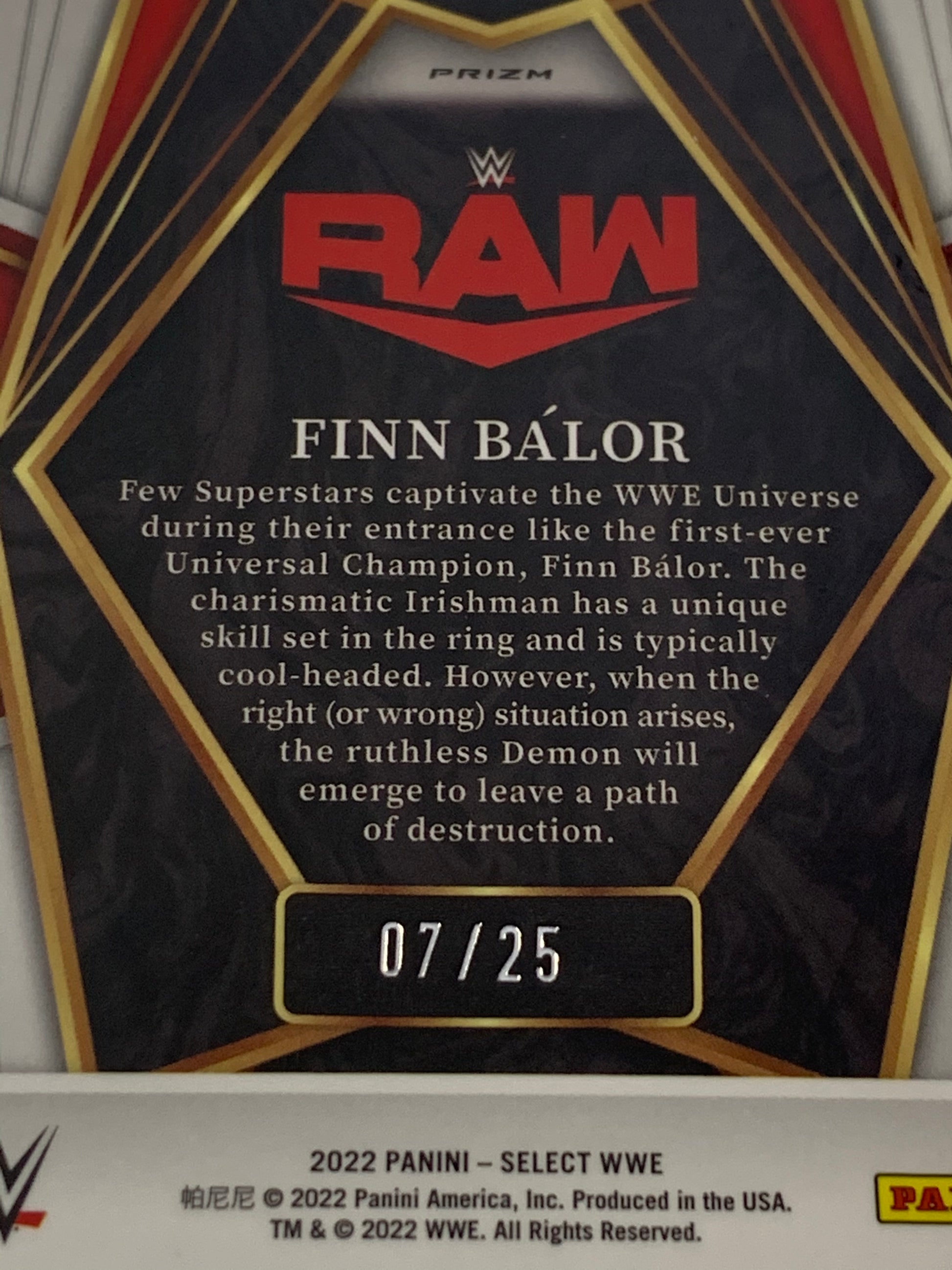 This is a Finn Balor 2022 WWE Panini Select Tie-Dye “Premier Level” Prizm #117 (#7/25)