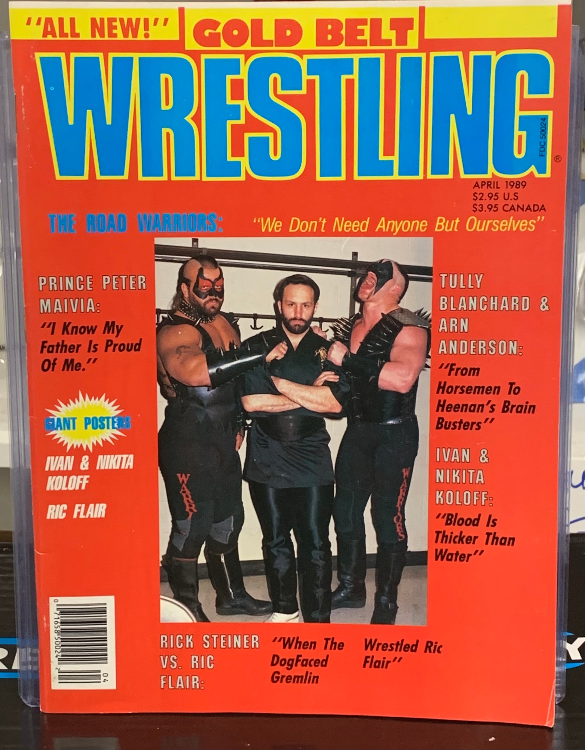 Gold Belt Wrestling Magazine April 1989 ROAD WARRIORS (Flair/Ivan & Nikita Koloff Poster)