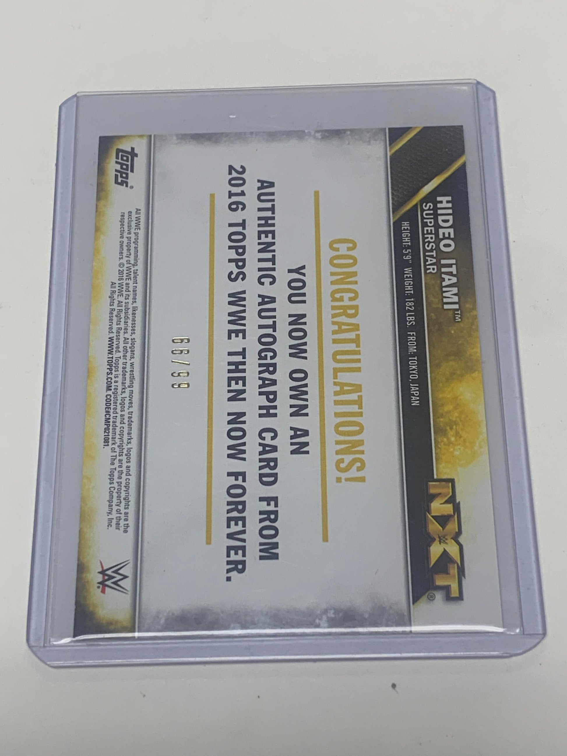Hideo Itami 2016 WWE NXT SIGNED Card #’ed 66/99