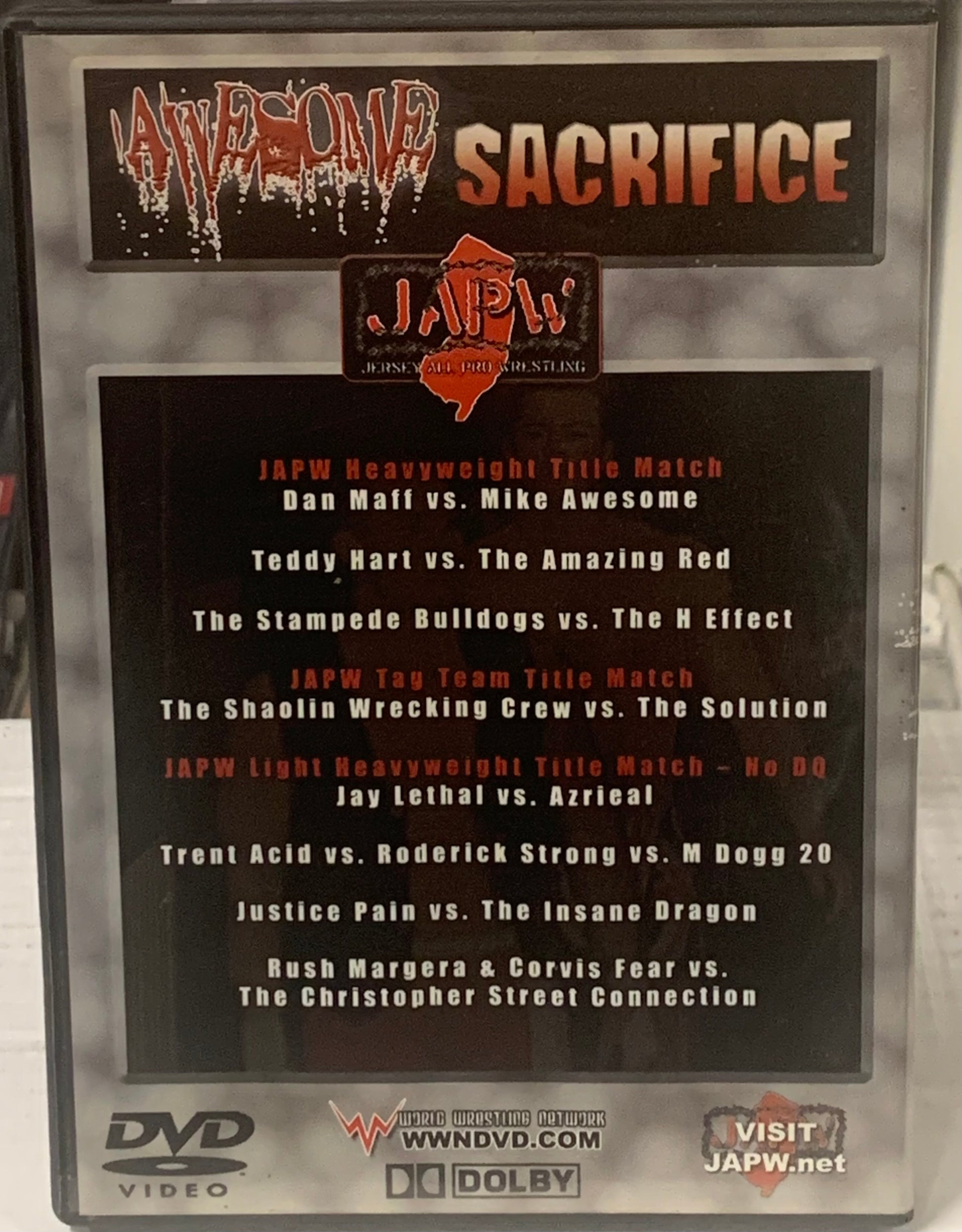 JAPW Jersey All Pro Wrestling DVD “Awesome Sacrifice” (Mike Awesome, Vader, Amazing Red, Jay Lethal & so much more)