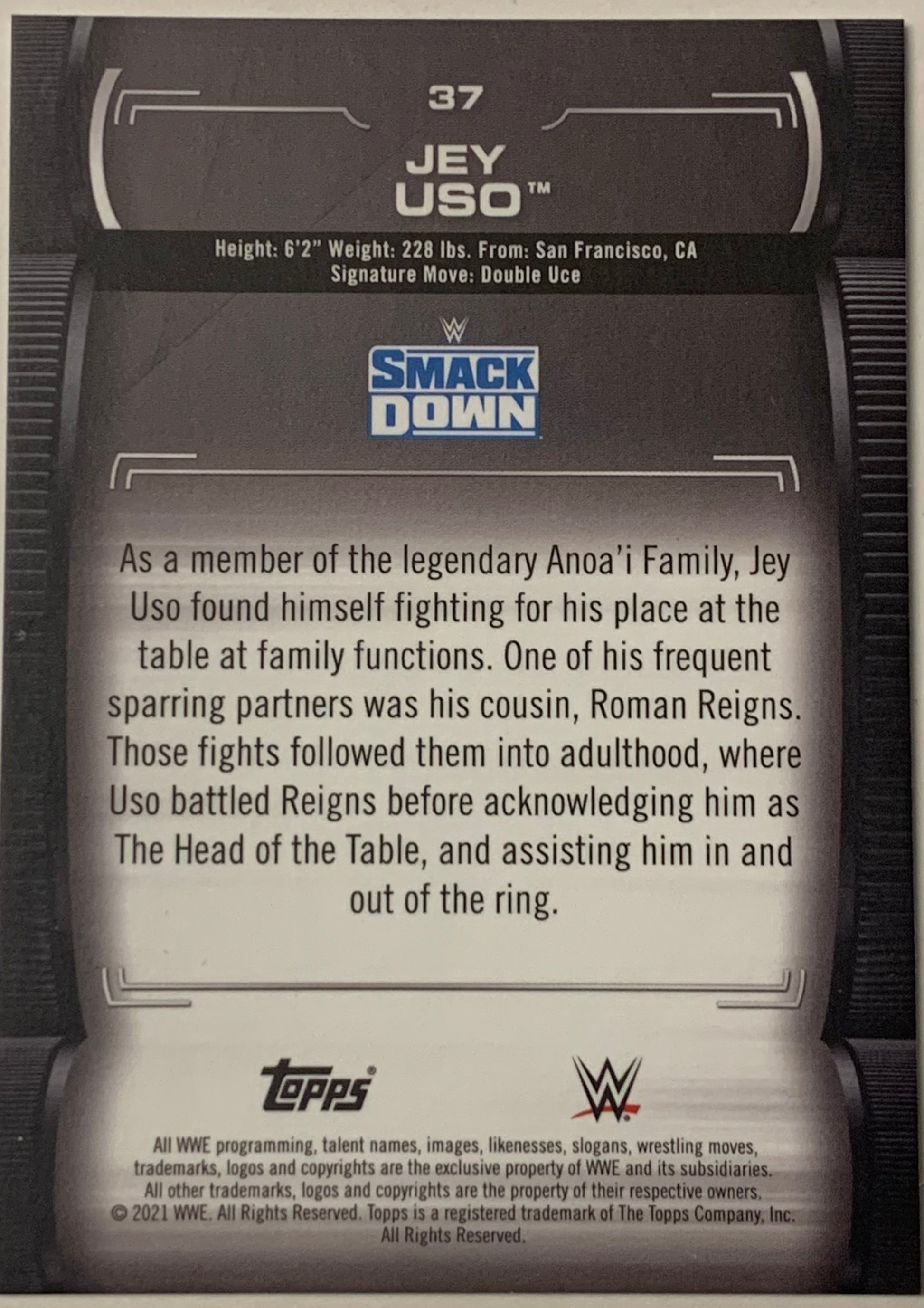 Jey Uso 2021 WWE Topps Undisputed Card #37