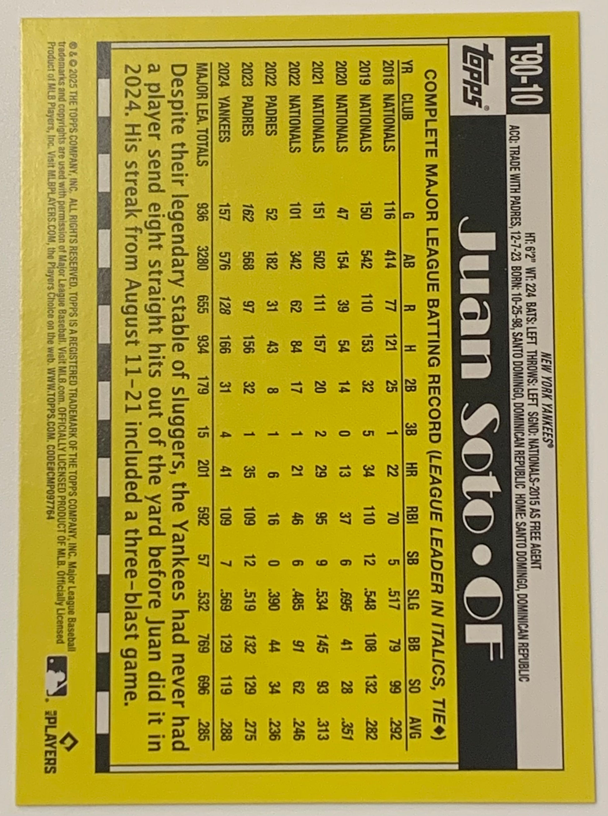 Juan Soto 2025 Topps (1990 35th Anniversary) Insert Card #T90-10