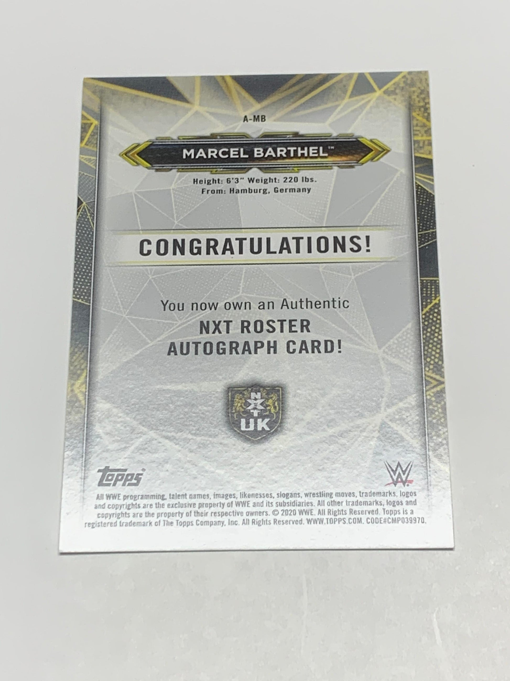 Marcel Barthel 2020 Topps WWE NXT Autographed Card #A-MB