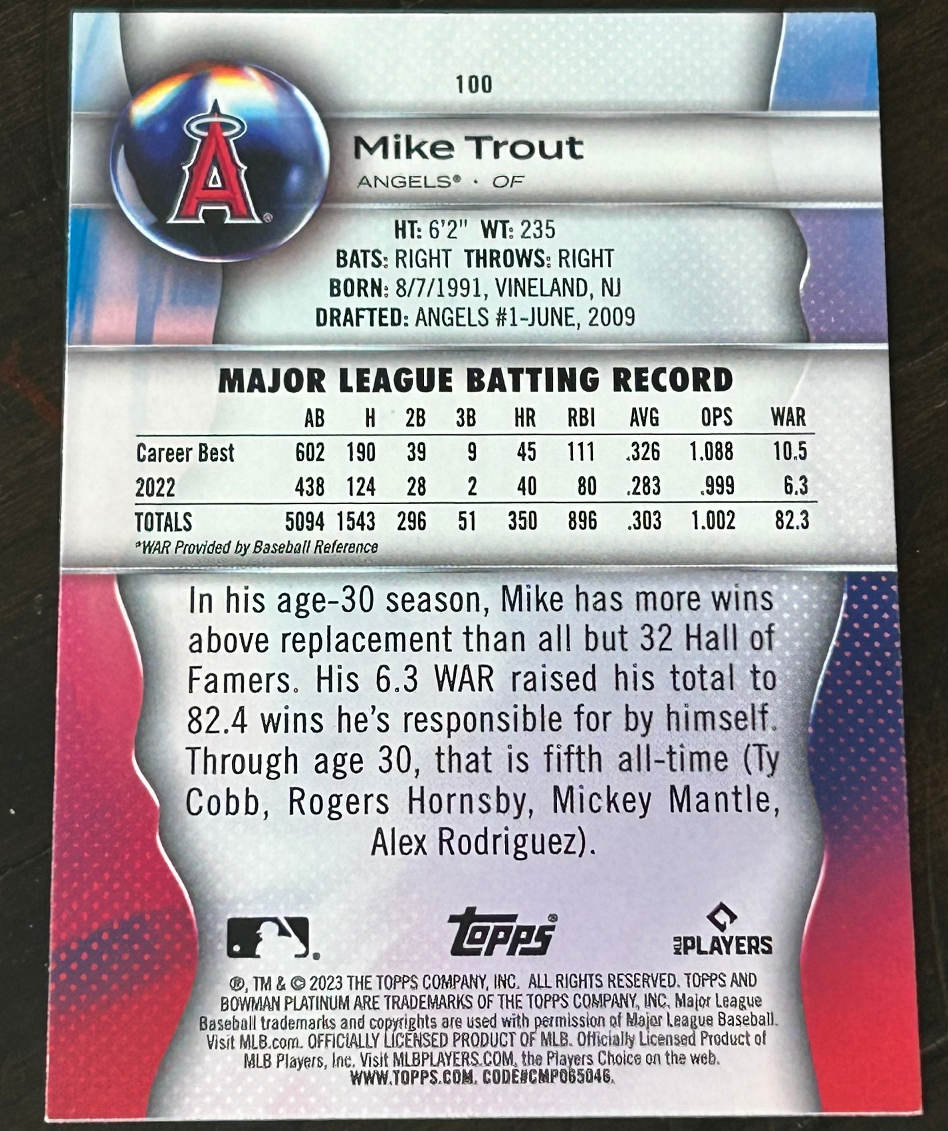 Mike Trout 2023 Topps Bowman Platnum Baseball Card #100