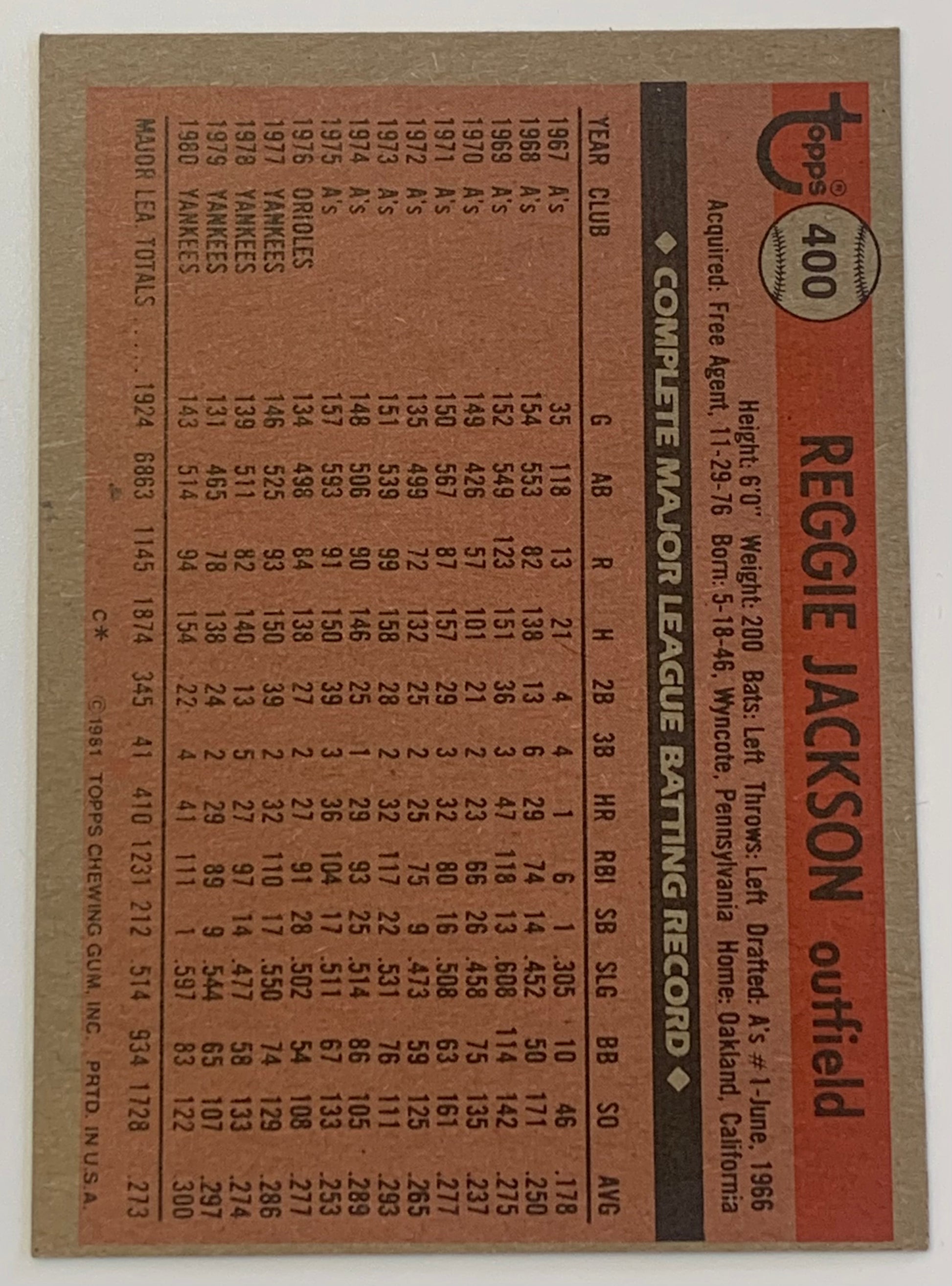 Reggie Jackson 1981 Topps Baseball Card YANKEES