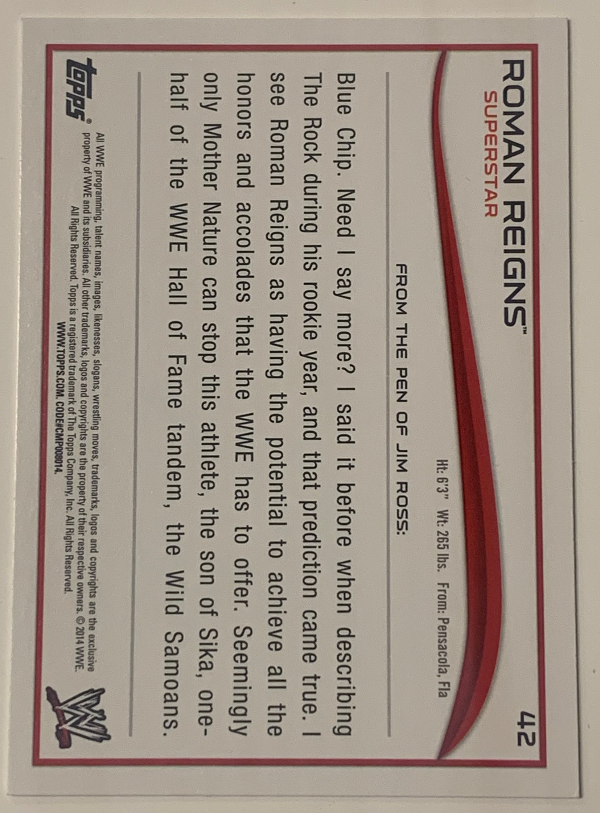Roman Reigns 2014 WWE Topps Card