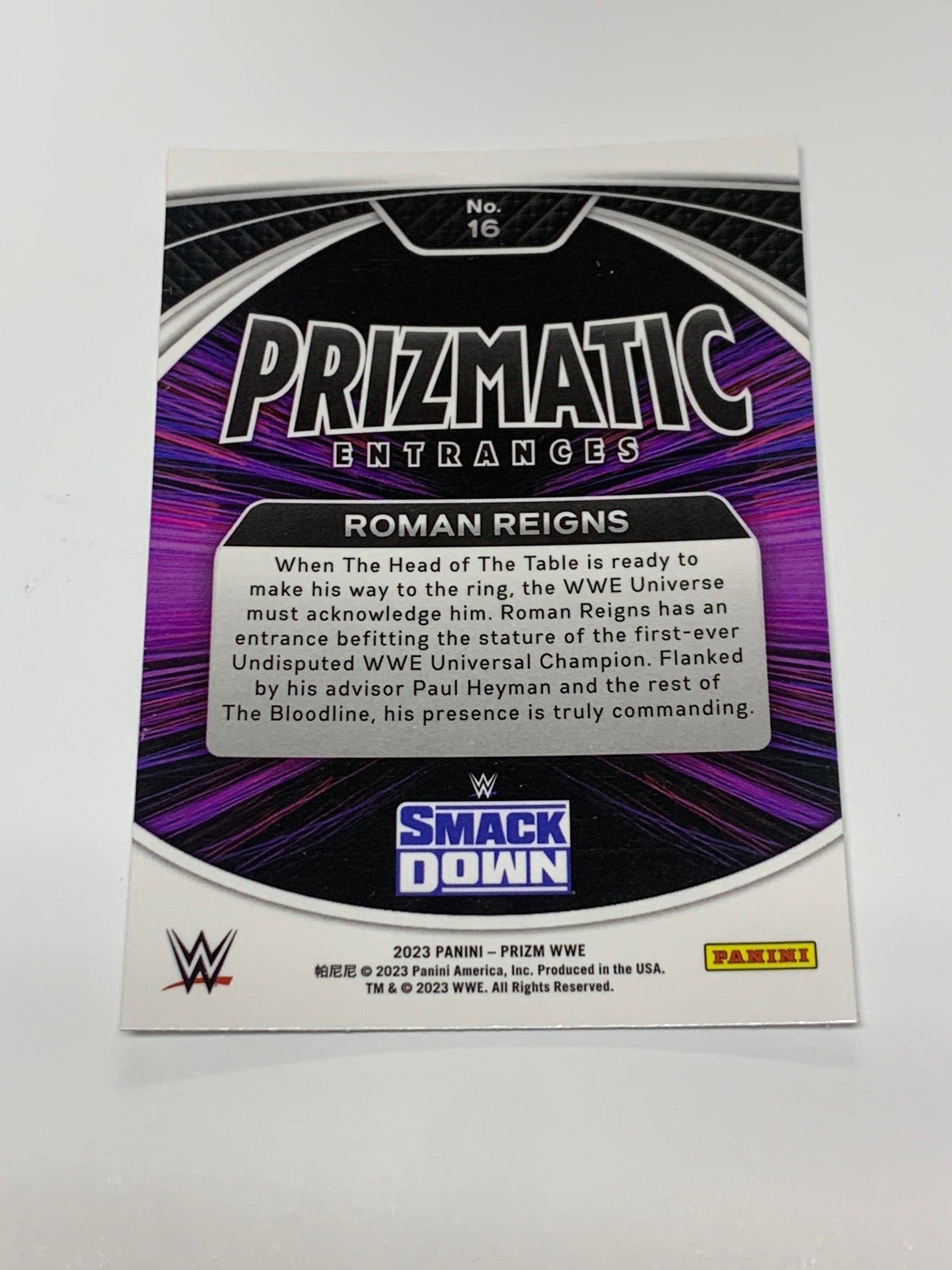 Roman Reigns 2023 WWE Panini Prizm “Prizmatic Entrances “ Insert Card #16
