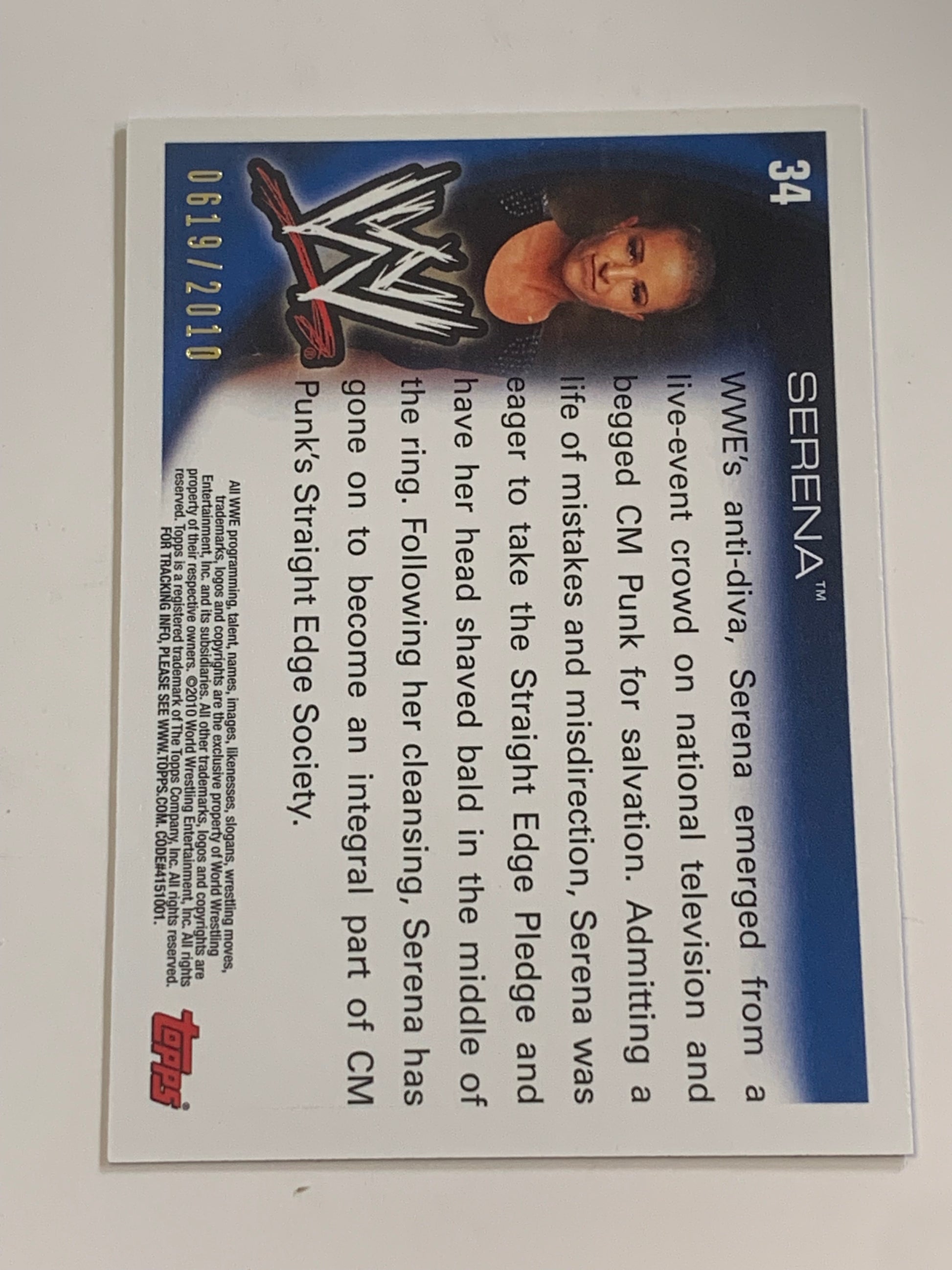 Serena 2010 WWE Topps Blue Parallel Card #619/2010 (Awesome Card)!!!