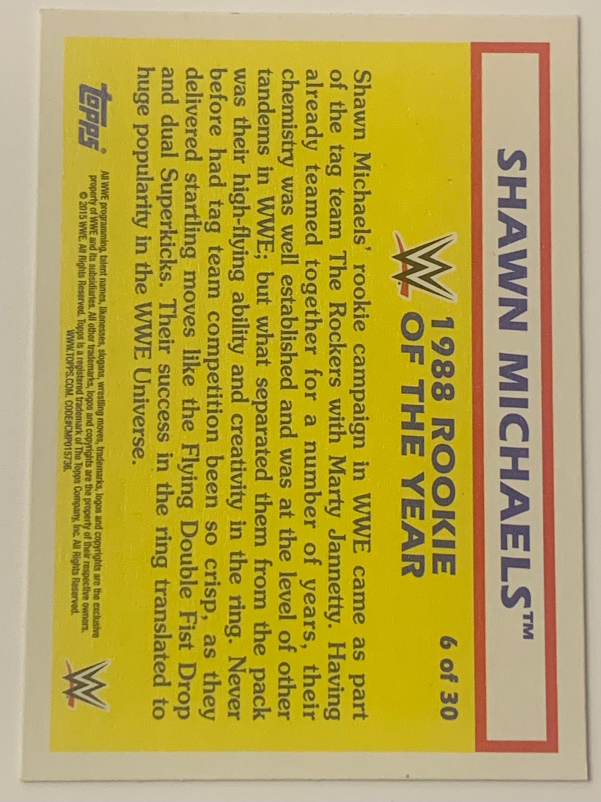 Shawn Michaels HBK 2015 WWE Topps Heritage “Rookie of The Year” Card #6