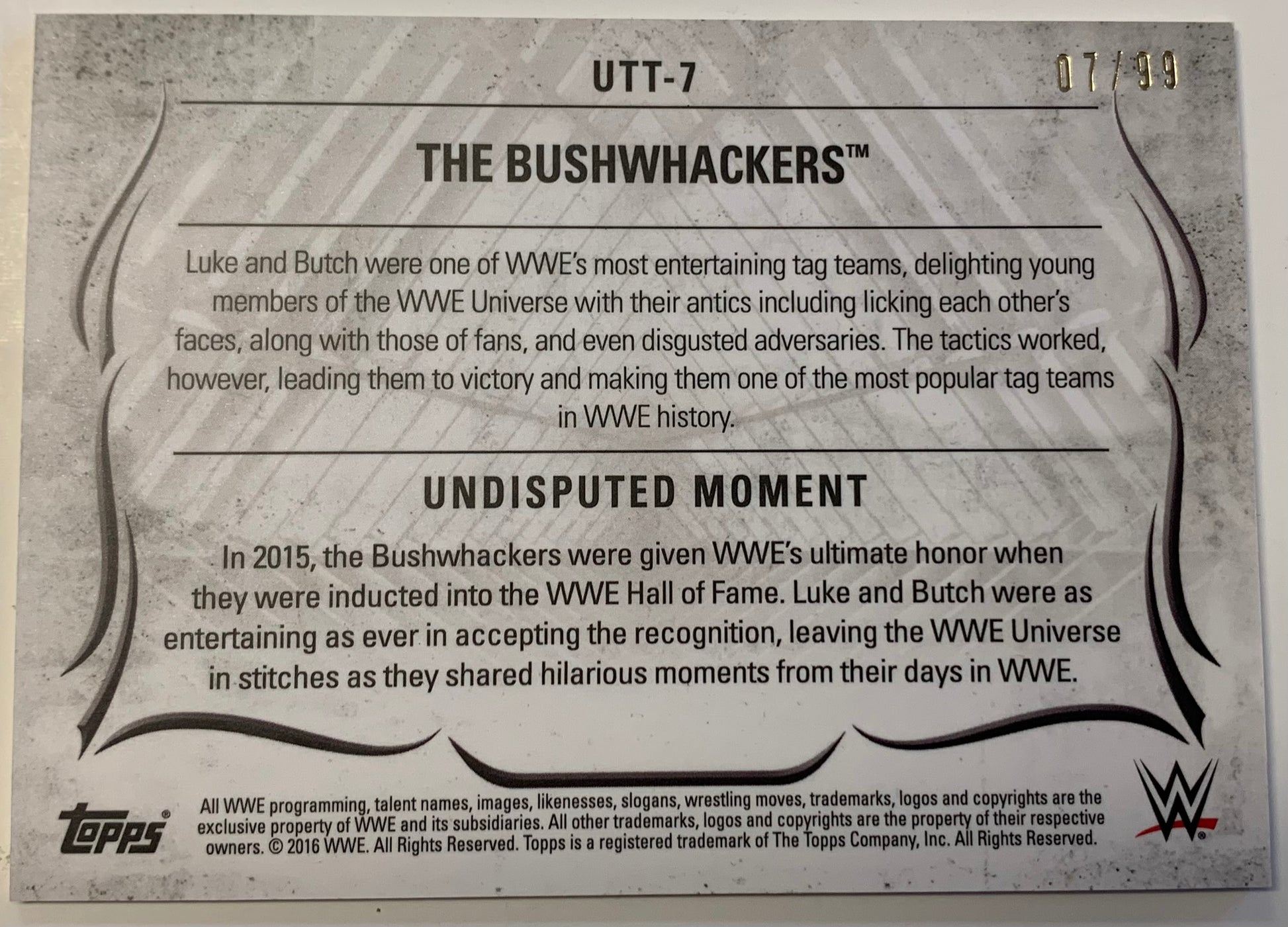 The Bushwackers 2016 WWE Topps Undisputed Parallel Card #7/99