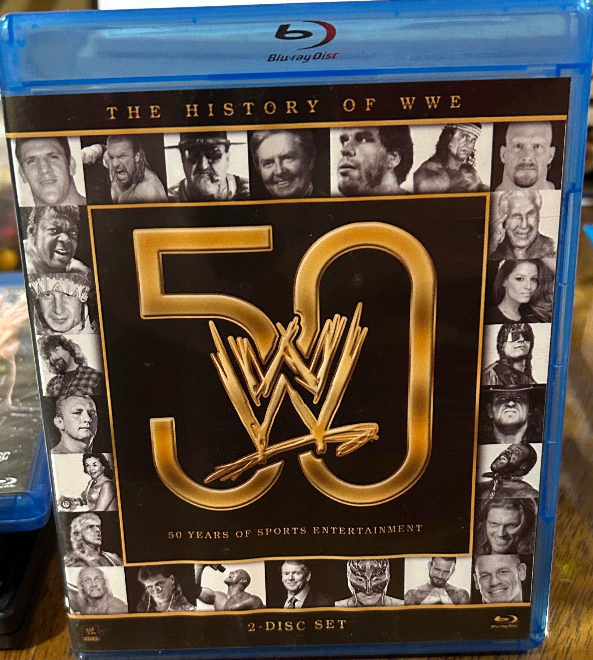 The History of WWE, 50 Years of Sports Entertainment Blu-ray (2-Disc set) used, but in great condition featuring