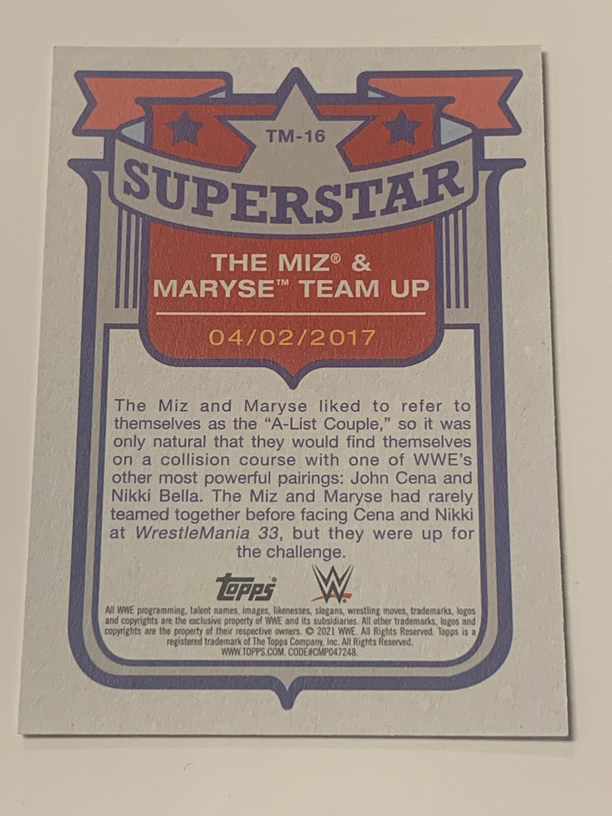 The Miz 2021 WWE Topps Superstar Card #TM-16