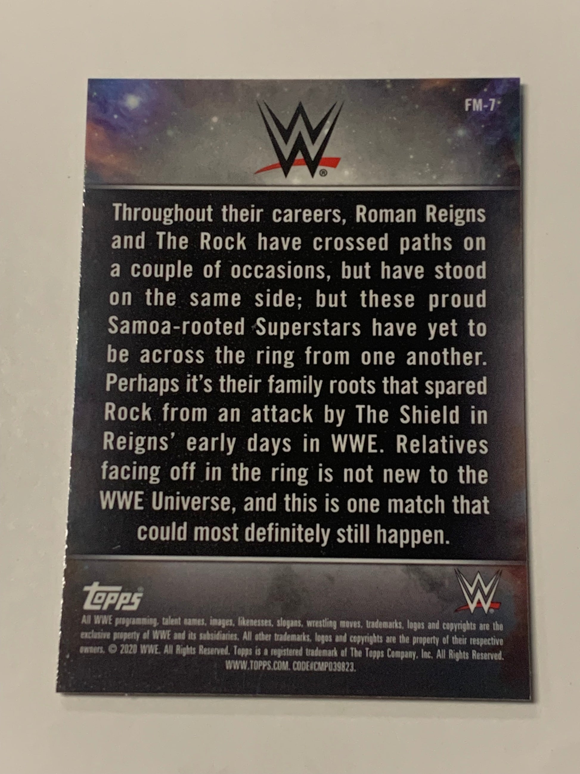 The Rock vs Roman Reigns 2020 WWE Topps Chrome Fantasy Matches Card #FM-7