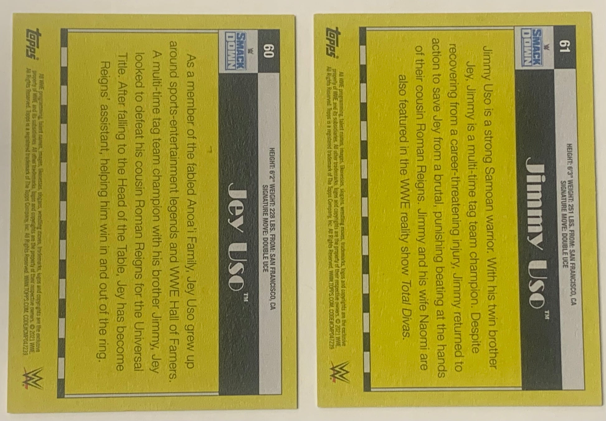The Uso’s (Jey & Jimmy Uso) 2021 WWE Topps Heritage Cards