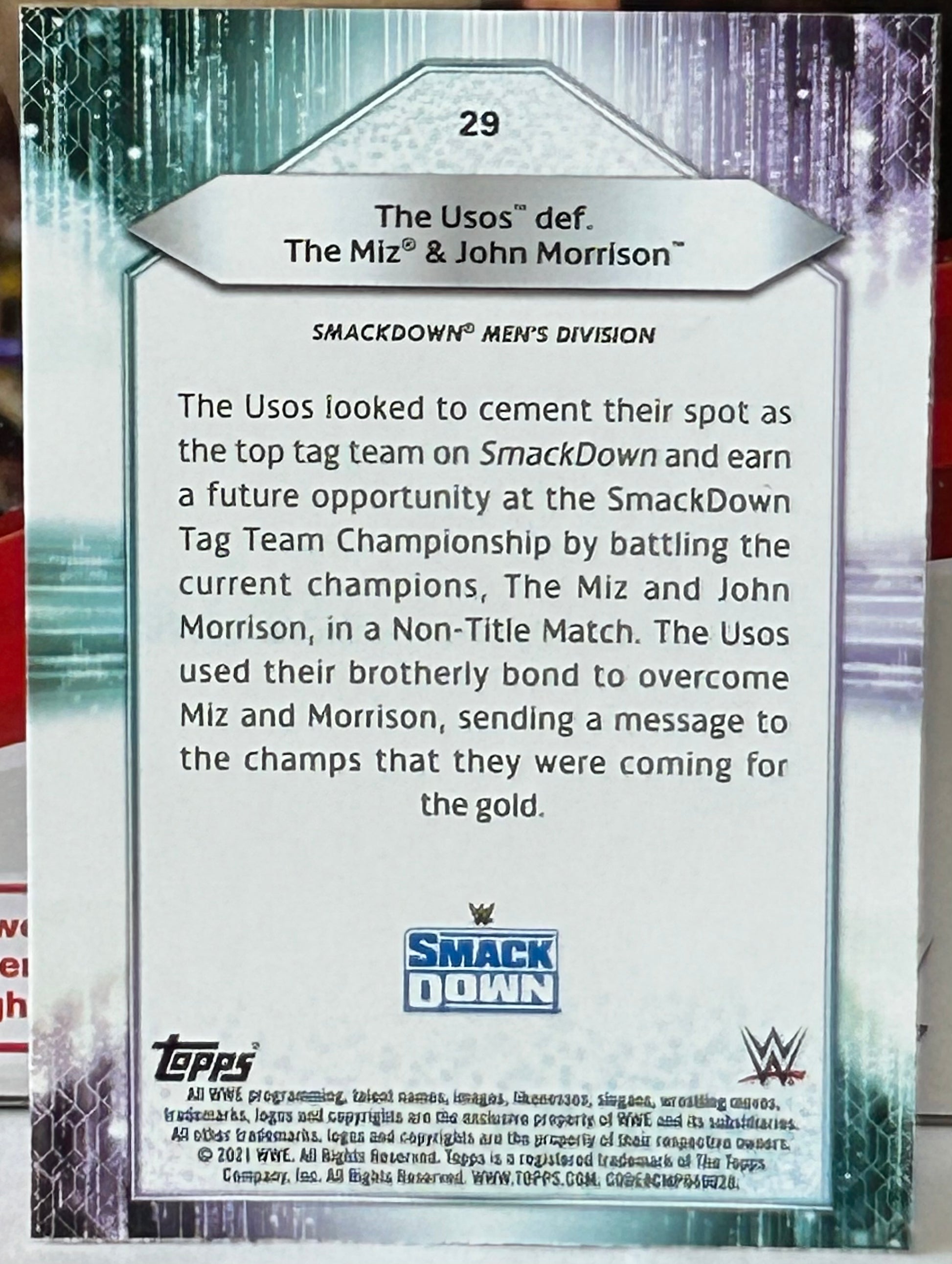 The Uso’s (Jimmy & Jey) Defeat The Miz & John Morrison 2021 WWE Topps FOILBOARD Parallel Card #29