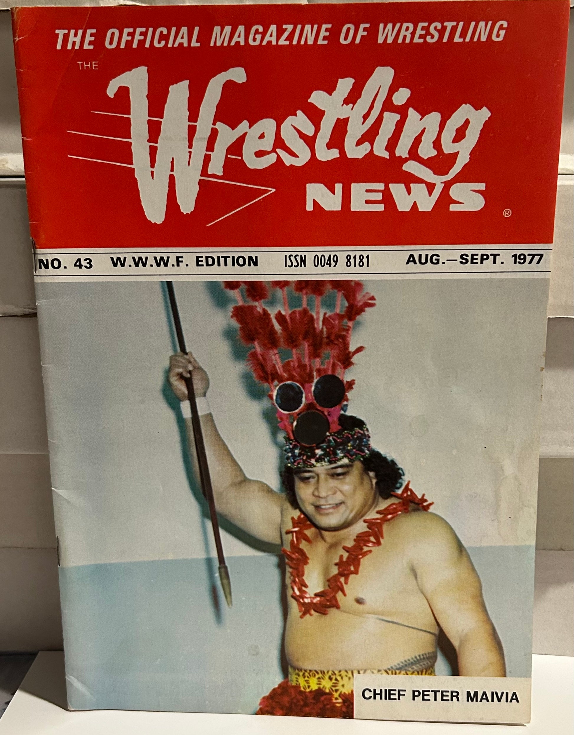 The Wrestling News Magazine #43 from Aug/Sept 1977 Featuring Chief Peter Maivia on the front color