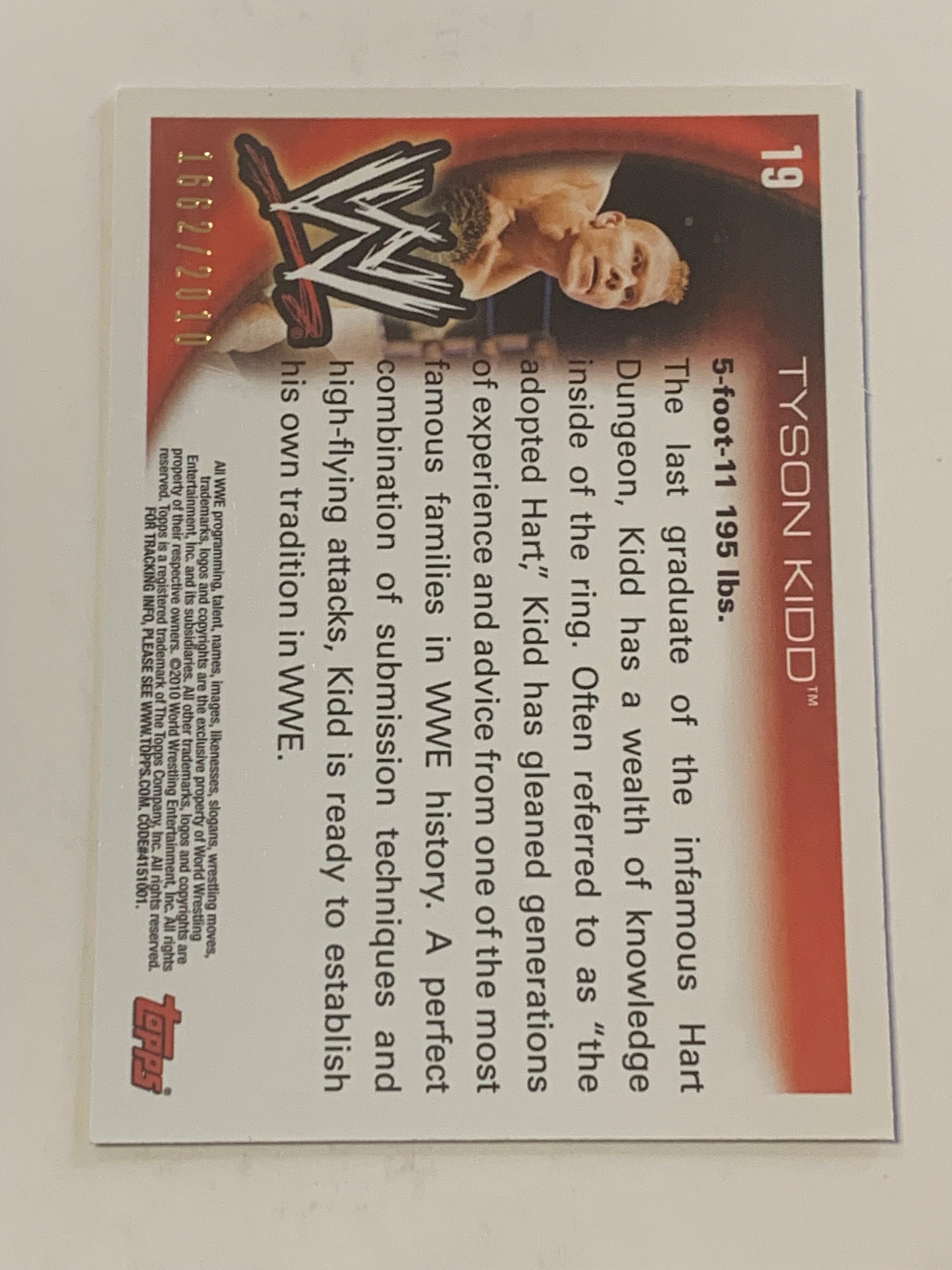 Tyson Kidd 2010 WWE Topps Blue Parallel Card #1662/2010 (Awesome Card)!!!
