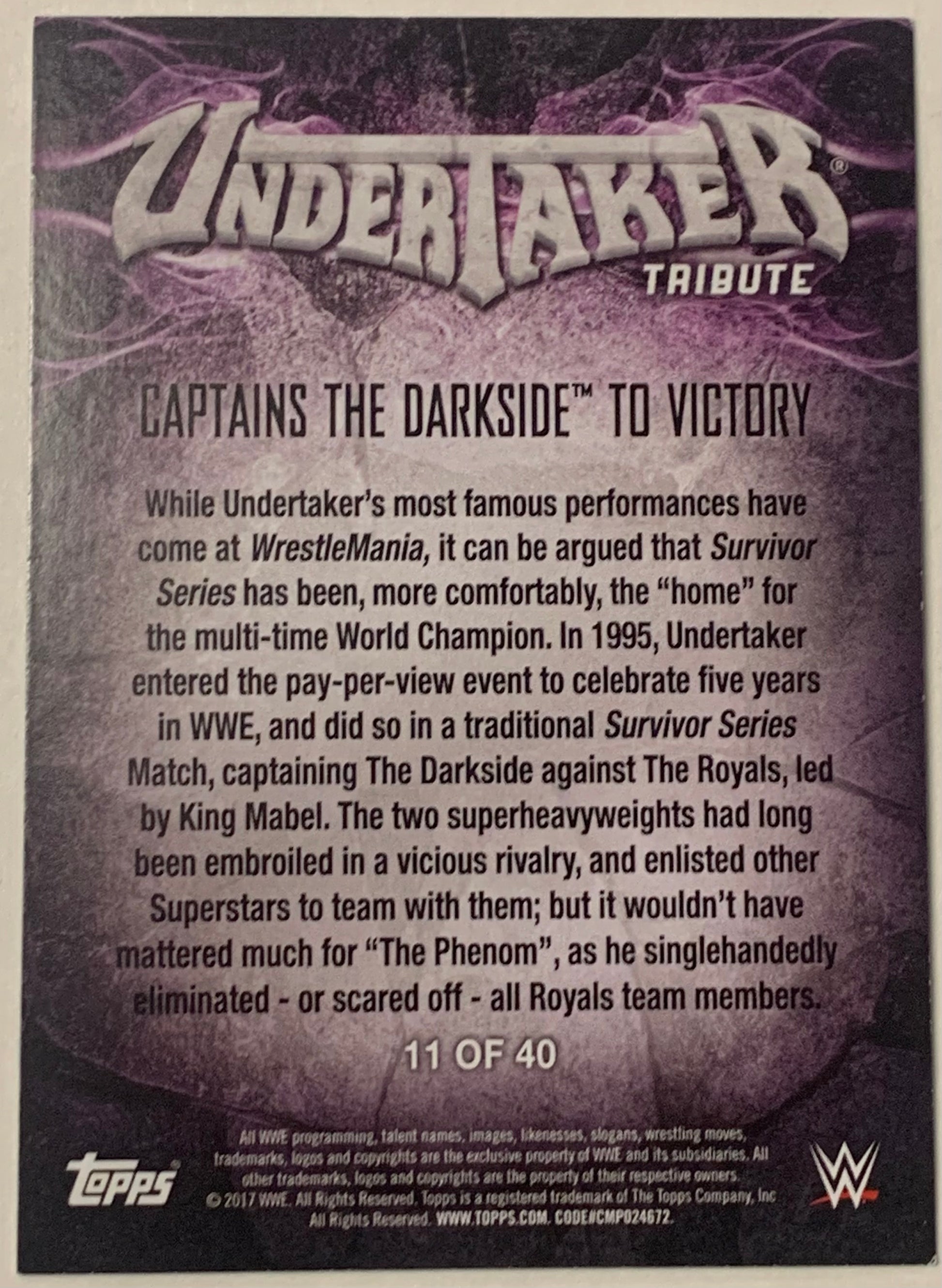 Undertaker 2017 WWE Topps “Undertaker Tribute” Insert Card #11 of 40