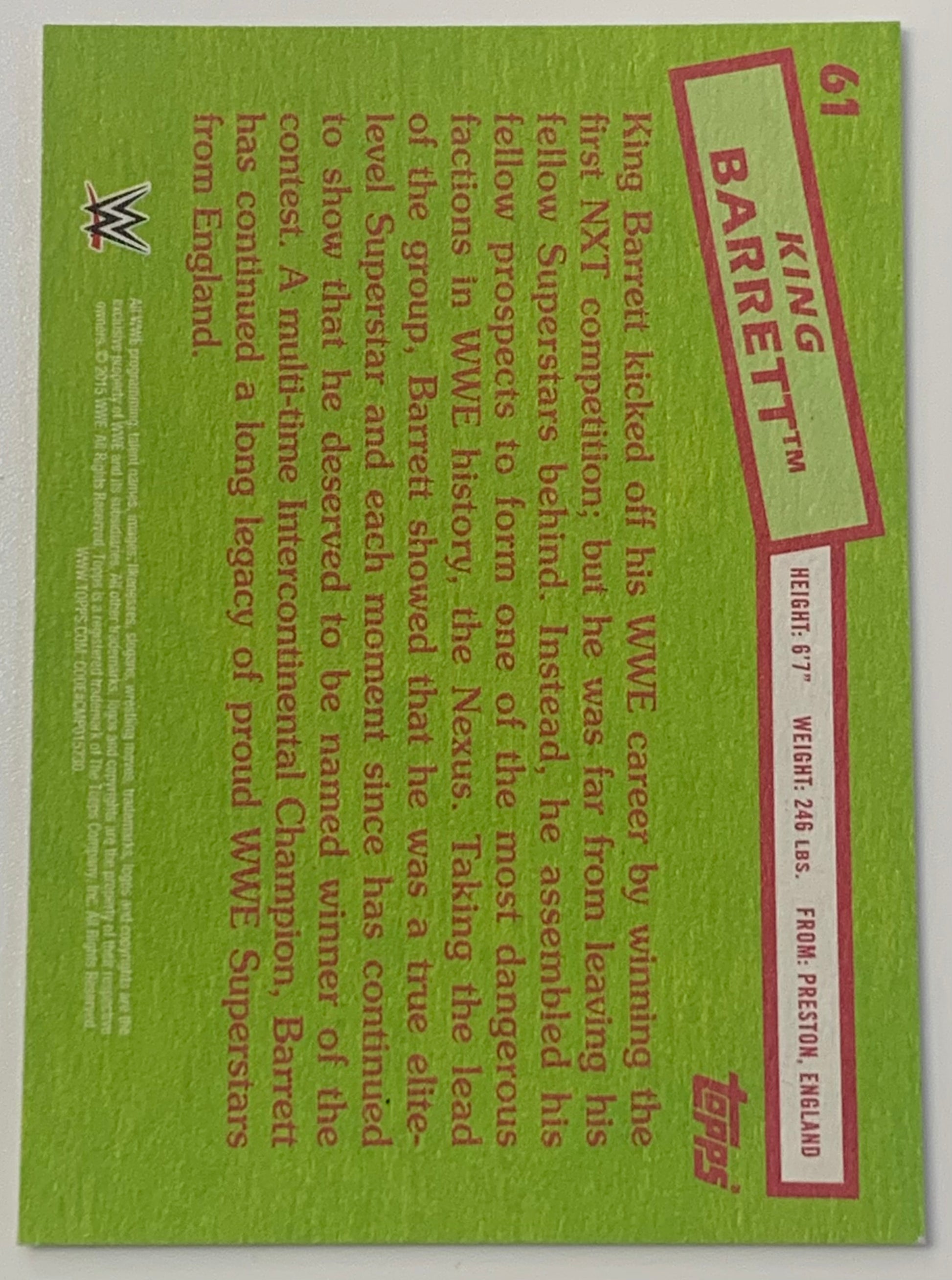 Wade Barrett 2015 WWE Topps Heritage Card (King Barrett)
