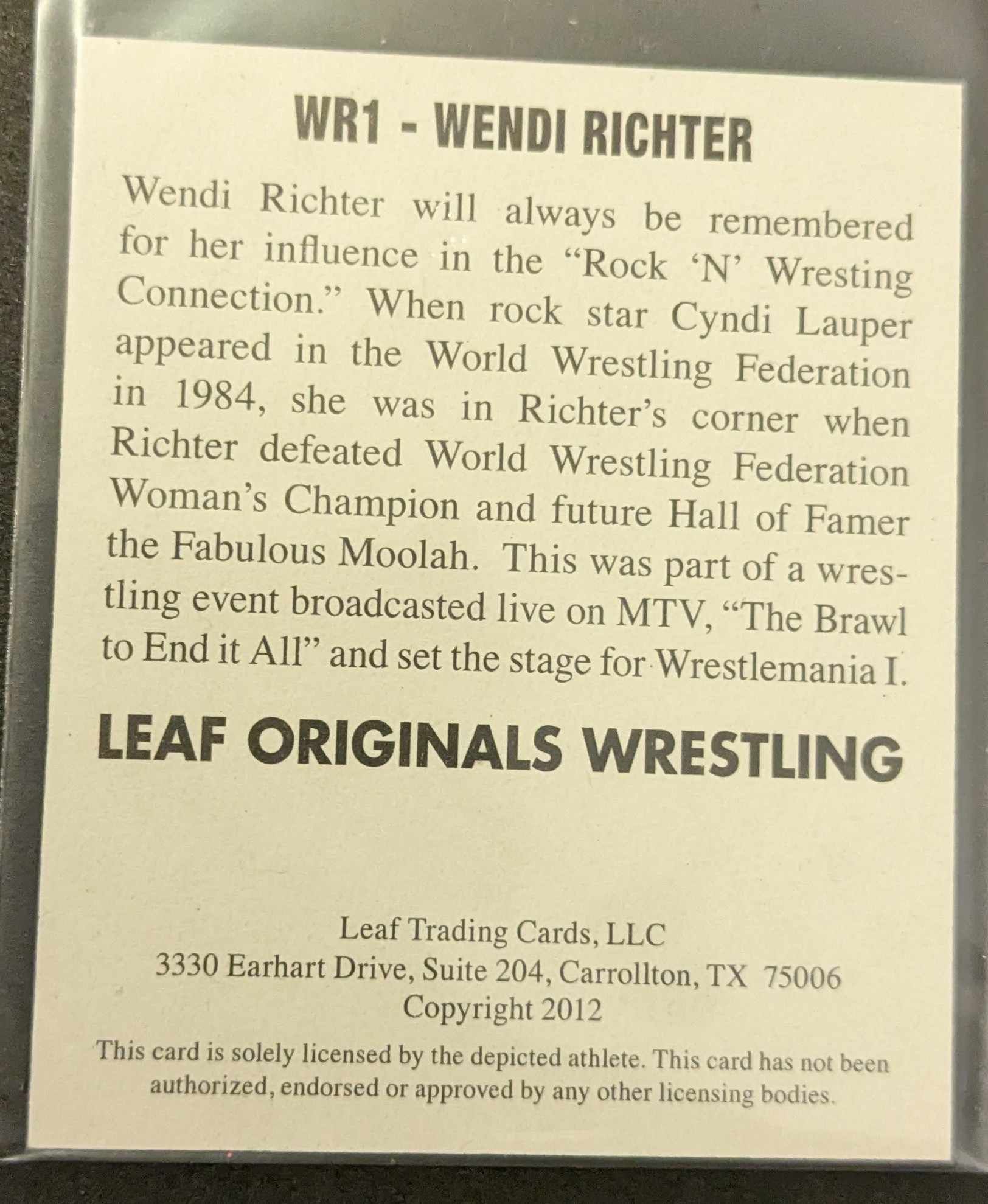 Wendi Richter Leaf Original Wrestling 2012 Signed Card