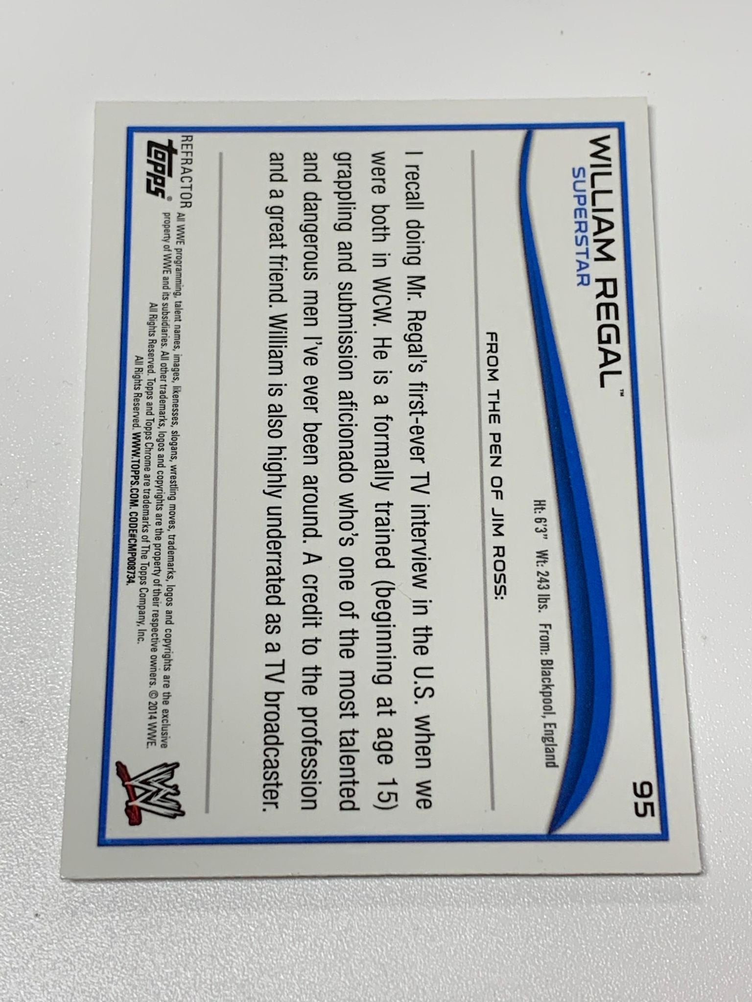 William Regal 2014 WWE Topps Chrome REFRACTOR #95